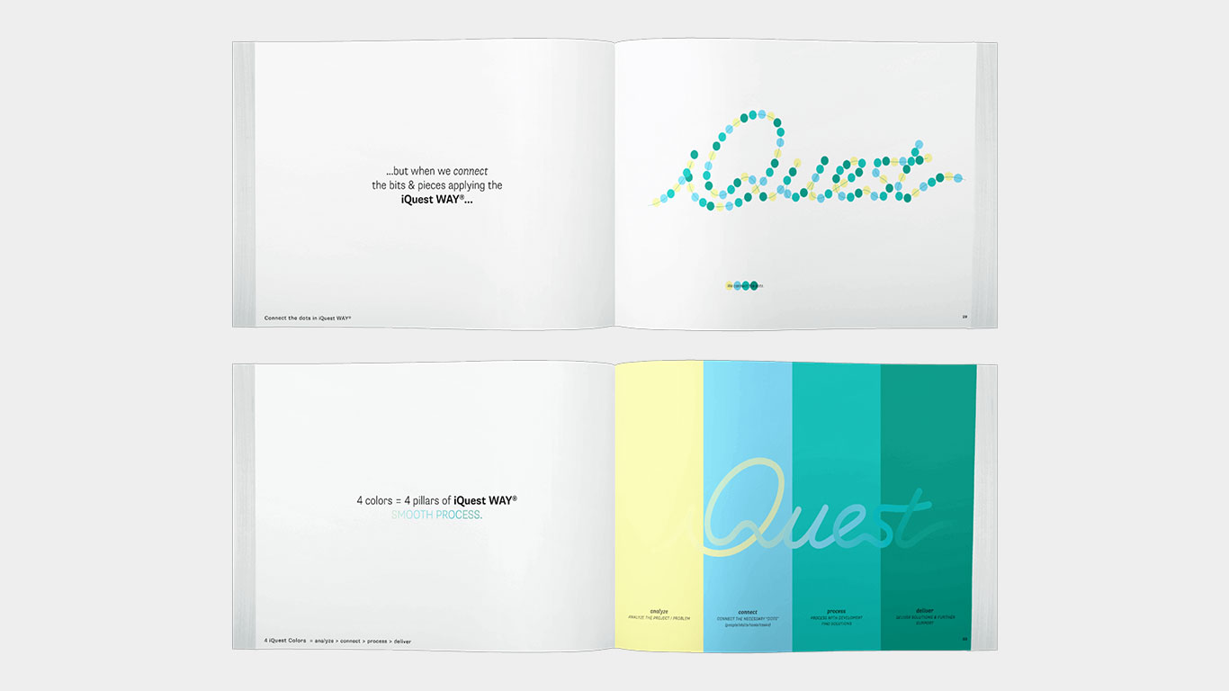 As an IT consulting company iQuest, recognized the need to substantially differentiate themselves to stand out in the crowded market of IT service providers. As a forward-thinking team, it was essential to express their creative approach to IT solutions, to escape the competitive herd. iQuest requested an identity that would represent their core values and differentiated, innovative approach to IT solutions.