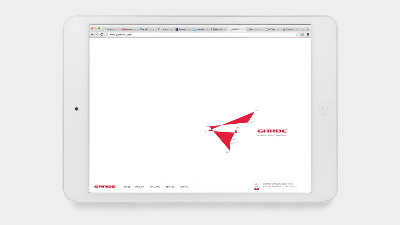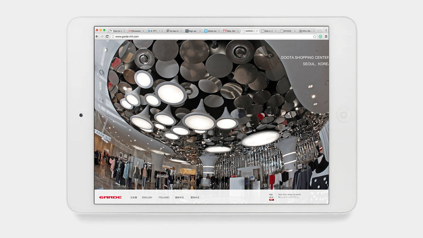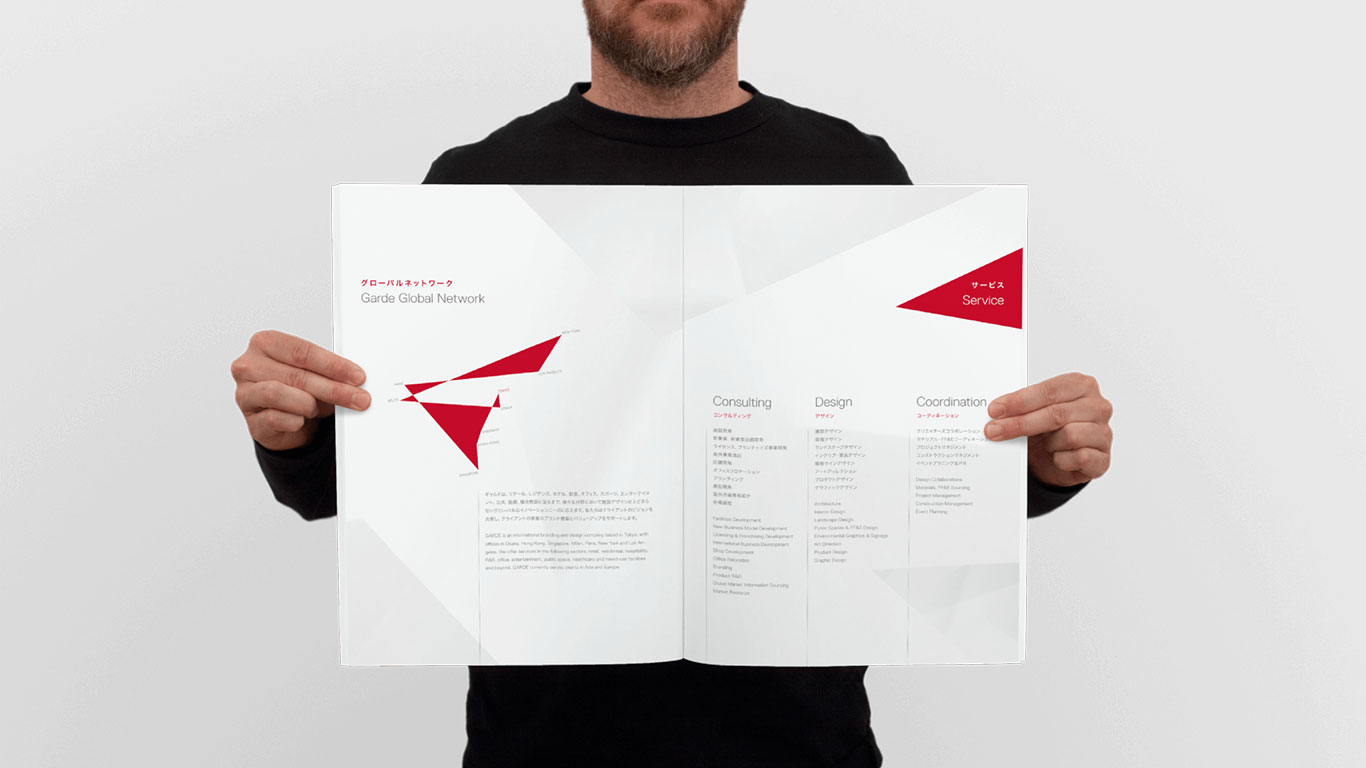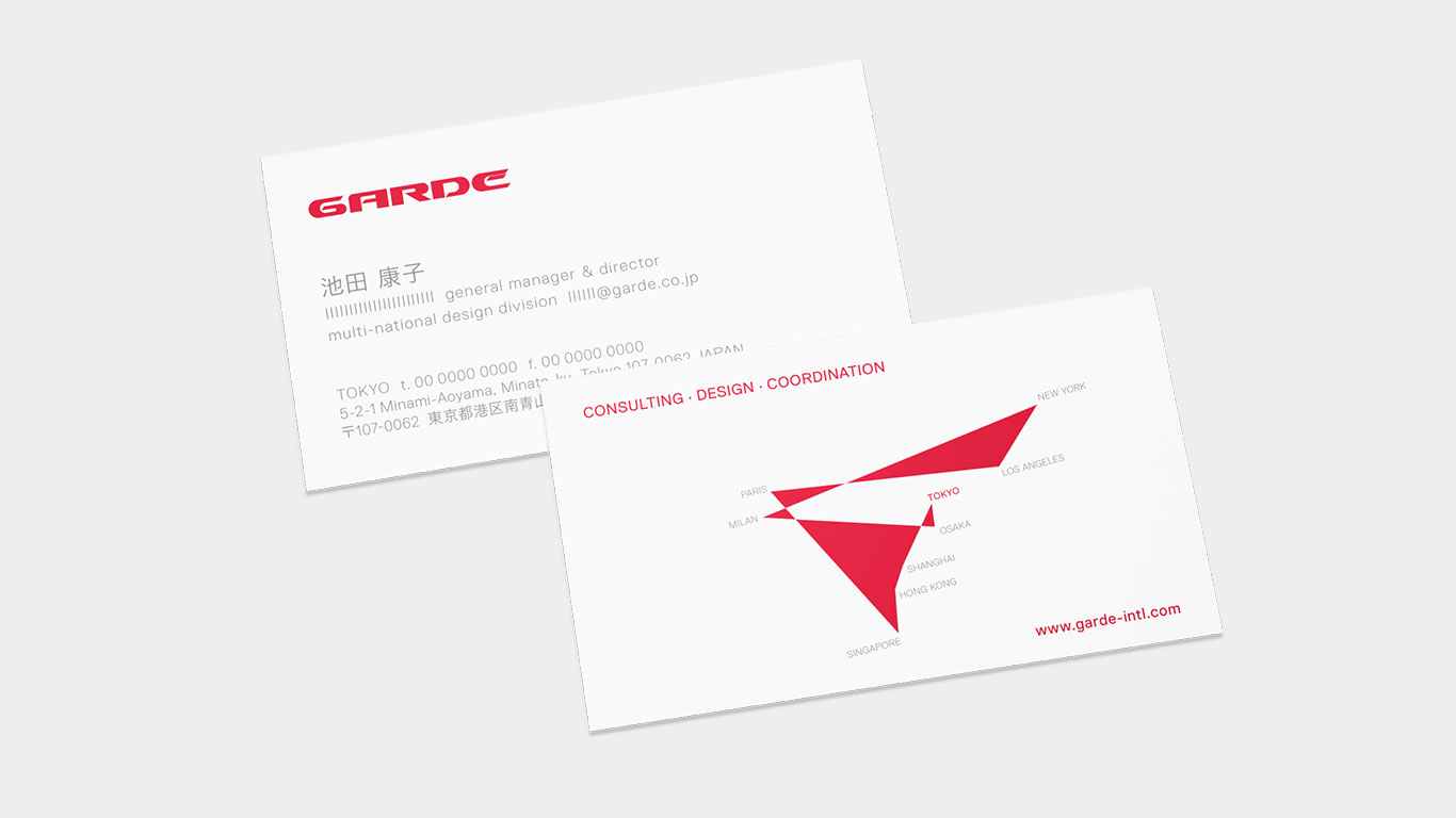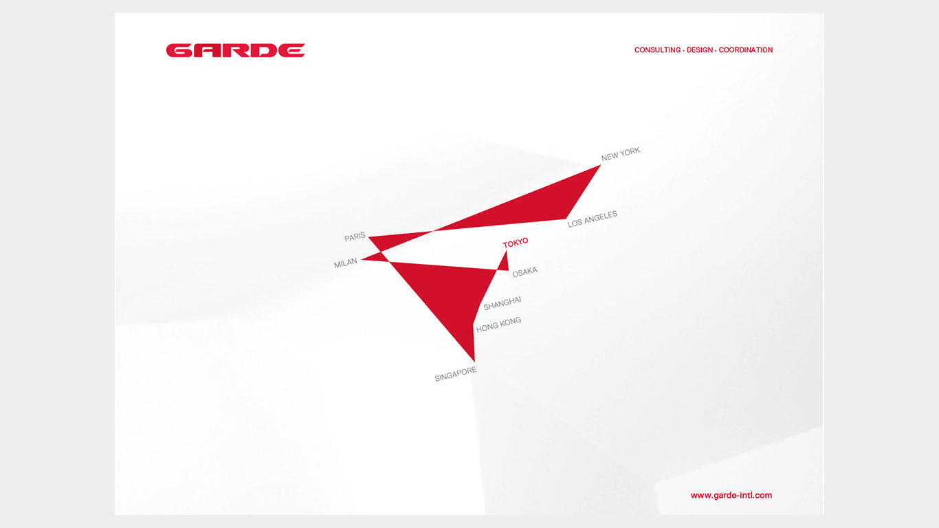 Garde is an international architecture and interior design company based in Tokyo with offices in Osaka, Hong Kong, Singapore, Milan, Paris, New York, and Los Angeles. Garde offers consulting, creative design and coordination services in retail, residential, hospitality, F&B, office, entertainment, public, and healthcare facilities. Garde currently services clients in Asia and Europe.